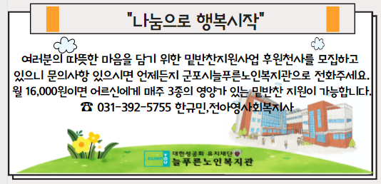 ±ºÆ÷½Ã´ÃǪ¸¥³ëÀκ¹Áö°ü(ÃÖ¼öÀç °üÀå)¿¡¼´Â 2¿ù 1ÀϺÎÅÍ °æÁ¦Àû¡¤½ÅüÀû ¾î·Á¿òÀ¸·Î ½Ä»çÁغñ¿¡ ¾î·Á¿òÀ» °Þ°í ÀÖ´Â ±ºÆ÷½Ã ³» ºÏºÎ±Ç¿ª(»êº»µ¿, ±ÝÁ¤µ¿, ±Ã³»µ¿, ¼ö¸®µ¿, ¿À±Ýµ¿, Àç±Ãµ¿, ±¤Á¤µ¿)¾î¸£½Å¿¡°Ô ÁÖ 1ȸ Á¤±âÀûÀ¸·Î ¹Ø¹ÝÂùÀ» °¡Á®´ÙÁÖ´Â »ç¾÷À» ½ÃÀÛÇÑ´Ù°í ¹àÇû´Ù. ¹Ø¹ÝÂù Áö¿ø»ç¾÷Àº °æÁ¦Àû ¾î·Á¿ò°ú °Åµ¿ºÒÆíÀ¸·Î ½Ä»ýȰ¿¡ ¾î·Á¿òÀ» °Þ´Â ÀÌ¿ëÀÚ¸¦ ¼±Á¤ÇØ Áö¿øÇÏ´Â »ç¾÷À¸·Î ÁÖ 1ȸ ¿µ¾ç½Ä´Ü¿¡ ¸Â´Â ¹Ø¹ÝÂù 3Á¾À» ÀÌ¿ëÀÚ ¾î¸£½Å°¡Á¤¿¡ ¹æ¹®ÇØ Àü´ÞÇÏ´Â »ç¾÷ÀÌ´Ù. ƯÈ÷, ¹Ø¹ÝÂùÁö¿ø»ç¾÷ ¼ºñ½º°¡ ½ÃÀÛµÈ 2¿ù 1ÀÏ ´çÀÏ KBIZÁß¼Ò±â¾÷»ç¶û³ª´®Àç´Ü¿¡¼ ÀÌ¿ëÀÚ ¾î¸£½ÅµéÀÌ µû¶æÇÑ ¶±±¹À» ²ú¿© µå½Ç ¼ö ÀÖµµ·Ï ¸¸µÎ, ÇÑ¿ì, ¶±À» Á¦°øÇØ Áö¿ª»çȸÀÇ µû¶æÇÑ ¸¶À½µµ ÇÔ²² Àü´ÞÇÒ ¼ö ÀÖ¾ú´Ù. ¼ºñ½º¸¦ ¹ÞÀ¸½Å Àü¿µÀÚ(°¡¸í) ¾î¸£½ÅÀº ¡°Äڷγª19·Î ¿ÜÃâµµ ¾î·Æ°í ÅëÀåÀÜ°í¸¸ º¸¸é ÇѼûÀÌ ³ª¼ ½ÄÀç·á±¸¸Å¸¦ Çϳª¶óµµ ÁÙÀ̱â À§ÇØ ³ë·ÂÇÏ´Ùº¸´Ï ¹ä»óÀ§¿¡ ÂùÀÌ °ÅÀÇ ¾ø´Âµ¥ º¹Áö°ü¿¡¼ ¹Ø¹ÝÂùÀ» ¹Þ°Ô µÇ¾î ½Ä»çÁغñ¿¡ ´ëÇÑ ºÎ´ãÀ» ´ú ¼ö ÀÖ°Ú¾î, ¶±±¹Àç·á´Â ¿À´Ã Àú³á ¶±±¹ ²ú¿©¼ ¸ÀÀÖ°Ô ¸ÔÀ»°Ô. Ã߿ Á¶½ÉÈ÷ °¡.¡±¶ó°í ÀüÇÏ¸ç °¨»çÇÔÀ» ÀüÇß´Ù. |