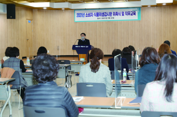 ±ºÆ÷½Ã´Â ½Äǰ¾ÈÀü°ü¸® Çâ»óÀ» À§ÇØ 3¿ù 22ÀÏ ½Ãû º°°ü ȸÀǽǿ¡¼ ½Ã´Ï¾î ¼ÒºñÀÚ°¨½Ã¿ø µî ¼ÒºñÀÚ ½ÄǰÀ§»ý°¨½Ã¿ø 32¸í¿¡°Ô À§ÃËÀåÀ» ¼ö¿©Çϰí, °¨½Ã¿ø ÀÓ¹«¿Í Á÷¹«¼öÇà¿¡ µû¸¥ Ȱµ¿ ¿ä·É µîÀ» ±³À°Çß´Ù. À§Ã˽Ŀ¡ À̾î, ¼ÒºñÀÚ ½ÄǰÀ§»ý°¨½Ã¿øÀÇ ÀÓ¹«¿Í ½ÄǰÀ§»ý °¨½Ã¿ä·É, ½ÄǰÀ§»ý¹ý ÇØ¼³, ½ÄÁßµ¶ °ü¸®, Á¢°´¾÷¼ÒÀÇ À§»ý°ü¸® ÀÌÇØ¿Í Ȱµ¿»ç·Ê µîÀ» ÁÖÁ¦·Î ±³À°ÀÌ ½Ç½ÃµÆ´Ù. ±ºÆ÷½Ã ¼ÒºñÀÚ ½ÄǰÀ§»ý°¨½Ã¿øÀº ½Ãû ȨÆäÀÌÁö °ø°³¸ðÁýÀ» ÅëÇØ ¼±¹ßµÆÀ¸¸ç, ¾ÕÀ¸·Î 2³â°£ ½ÄǰÁ¢°´¾÷¼Ò¿¡ ´ëÇÑ ½Ã¼³ ¹× À§»ý°ü¸® Á¡°Ë, Äڷγª19 ¹æ¿ª¼öÄ¢ ¹× Á¶¸®ÆÇ¸Å¾÷¼ÒÀÇ È¯°æ°³¼± Áöµµ¿Í È«º¸, ºÎÁ¤ ºÒ·®½Äǰ À¯Åë ±ÙÀý°ú ¾ÈÀüÇÑ ½Äǰȯ°æ Á¶¼º µîÀ» À§ÇØ È°µ¿ÇÒ ¿¹Á¤ÀÌ´Ù.