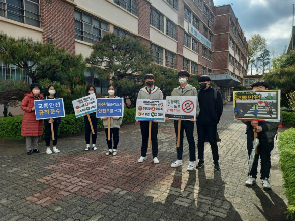 ¿ëÈ£ÁßÇб³(±³Àå ÀÓÁ¾Ä¥)´Â 4¿ù 14ÀÏ Çлý µî±·±æ°ú Ⱦ´Üº¸µµ¿¡¼ ¾î¸°ÀÌ º¸È£±¸¿ª ³» ±³Åë¾ÈÀü ½Çõ ¹®È Á¤ÂøÀ» À§ÇØ ÇàÁ¤¾ÈÀüºÎ°¡ ÃßÁø ÁßÀÎ ¡®¾î¸°ÀÌ ±³Åë¾ÈÀü ¸±·¹ÀÌ Ã§¸°Áö¡¯¿¡ µ¿ÂüÇß´Ù. ÀÌ Ä·ÆäÀÎÀº ¾î¸°ÀÌ º¸È£ ÃÖ¿ì¼± ¹®È¸¦ Á¤ÂøÇÏ°í ±³Åë»ç°í ¿¹¹æ¿¡ ´ëÇÑ »çȸÀû °ü½ÉÀ» ÀÏÀ¸Å°±â À§ÇØ Áö³ÇØ 12¿ù ÇàÁ¤¾ÈÀüºÎ¿¡¼ ½ÃÀ۵ƴÙ. ¿ëÈ£ÁßÇб³ ÀÓÁ¾Ä¥ ±³ÀåÀº ¡°¡®¹Ù¸¥Àμº°ú âÁ¶Àû »ç°í¸¦ Áö´Ñ ¿ëÈ£ÀÎ À°¼º¡¯À̶ó´Â ºñÀü ¾Æ·¡ ÇлýÀÚġȸ ÇлýµéÀ» Áß½ÉÀ¸·Î ±³À°°øµ¿Ã¼°¡ ÇÔ²² Ä·ÆäÀο¡ Âü¿©ÇßÀ¸¸ç, ¡°¼º¼÷ÇÑ ±³Åë¾ÈÀü ¹®È¸¦ ¸¸µé±â À§Çؼ´Â ¿ì¸® ½º½º·Î°¡ ÀÏ»ó»ýȰ ¼Ó¿¡¼ ¾ÈÀüÀǽÄÀ» »ýȰÈÇØ¾ß ÇÑ´Ù.¡±¸é¼ Ä·ÆäÀÎ µ¿Âü °è±â¸¦ ¹àÇû´Ù. |