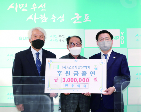 | ¹Î¿ì¾à±¹(±ºÆ÷½Ã ±ÝÁ¤µ¿ ¼ÒÀç) ¹èÁ¤¸í ´ëÇ¥°¡ 4¿ù 20ÀÏ ÀåÇбâ±Ý 300¸¸¿øÀ» (Àç)±ºÆ÷»ç¶ûÀåÇÐȸ¿¡ ±âºÎÇß´Ù. ¹èÁ¤¸í ´ëÇ¥´Â Áö³ÇØ ±ºÆ÷½Ã¾à»çȸ°¡ ÀåÇбâ±Ý 200¸¸¿øÀ» ±âºÎÇÒ ¶§µµ µ¿ÂüÇÑ ¹Ù ÀÖ´Ù.