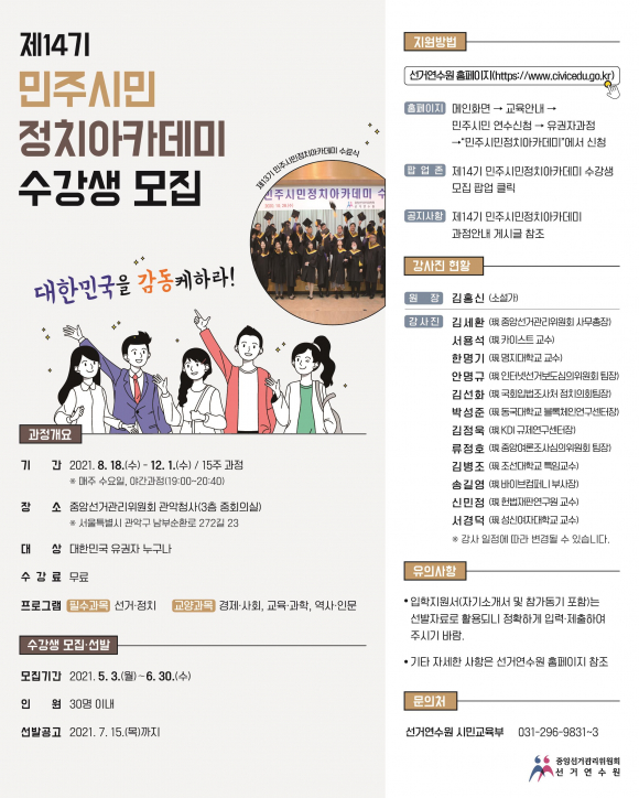 ¼±°Å¿¬¼ö¿ø, ¡®Á¦14±â ¹ÎÁֽùÎÁ¤Ä¡¾ÆÄ«µ¥¹Ì¡¯¼ö°»ý ¸ðÁý