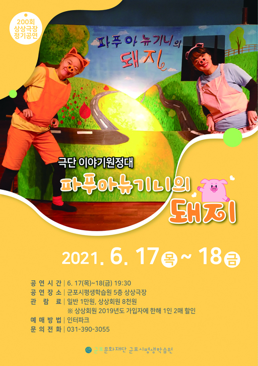 ±ºÆ÷¹®ÈÀç´ÜÀº 6¿ù 17Àϰú 18ÀÏ Àú³á 7½Ã30ºÐ¿¡ ±ºÆ÷½ÃÆò»ýÇнÀ¿ø »ó»ó±ØÀåÀÇ 6¿ù Á¤±â°ø¿¬ <ÆÄǪ¾Æ´º±â´ÏÀÇ µÅÁö>¸¦ ÁøÇàÇÑ´Ù°í ¹àÇû´Ù. ±ºÆ÷½ÃÆò»ýÇнÀ¿ø 5Ãþ¿¡ À§Ä¡ÇÑ »ó»ó±ØÀåÀº ¿Â °¡Á·ÀÌ ÇÔ²² Áñ±æ ¼ö ÀÖ´Â À帣ÀÇ °ø¿¬À» Á¤±âÀûÀ¸·Î ¼±º¸ÀÌ¸ç ±ºÆ÷½Ã¹Îµé¿¡°Ô Å« »ç¶ûÀ» ¹Þ´Â °ø°£À¸·Î, ¸Å¿ù Á¤±âÀûÀ¸·Î ¿Â °¡Á·ÀÌ ÇÔ²² Áñ±æ ¼ö ÀÖ´Â °ø¿¬À» ÁøÇàÇϰí ÀÖ´Ù. À̹ø 6¿ù Á¤±â°ø¿¬¿¡¼ ½Ã¹ÎµéÀ» ¸¸³ª´Â Á¾ÀÌȸÀü¿¬±Ø <ÆÄǪ¾Æ´º±â´ÏÀÇ µÅÁö>´Â ±×¸²ÀÌ ±×·ÁÁø ³ôÀÌ 2¹ÌÅÍÀÇ Á¾ÀÌ µÎ·ç¸¶¸®¸¦ ºù±Ûºù±Û µ¹¸®¸é¼ ¹è¿ì¿Í Á¾ÀÌÀÎÇüÀÌ µ¿½Ã¿¡ ´ÙÀ̳ª¹ÍÇÏ°Ô ¿òÁ÷ÀÌ´Â »õ·Î¿î ÇüÅÂÀÇ °ø¿¬ÀÌ´Ù. ÀÌ ÀÛǰÀº ¿À°æ¼÷ µ¿ÈÀÛ°¡ÀÇ ¡®ÆÄǪ¾Æ´º±â´ÏÀÇ µÅÁö¡¯ ¶ó´Â µ¿½Ã¸¦ ¸ðƼºê·Î ÇÑ Ã¢ÀÛ±ØÀ¸·Î, µ¿¹°À» ÀÌ¿ëÇØ µ·À» ¹ú·Á´Â »ç¶÷µé °çÀ» ¶°³ª¡®ÆÄǪ¾Æ´º±â´Ï¡¯¶ó´Â ÇູÇÑ µÅÁöµéÀÌ »ç´Â ³ª¶ó¸¦ ã¾Æ ¶°³ª´Â ÁÖÀΰø ÇÈÀÇ ¸ðÇèÀ̾߱⸦ ´ã°í ÀÖ´Ù. ƯÈ÷ µ¿¹°°ú »ç¶÷ÀÌ ÇÔ²² »ì¾Æ°¡´Â ÇູÇÑ °øÁ¸¿¡ ´ëÇÑ ±³ÈÆÀ» ¾î¸°ÀÌÀÇ ´«³ôÀÌ¿¡ ¸Â°Ô À̾߱â·Î Ç®¾î°¡´Â ÀÌ °ø¿¬Àº, ¾î¸°ÀÌ¿Í ¾î¸¥ ¸ðµÎ¿¡°Ô Ưº°ÇÑ ½Ã°£À» ¼±»çÇÒ ¿¹Á¤ÀÌ´Ù. ÇÑÆí À̹ø 6¿ù Á¤±â°ø¿¬¿¡¼´Â Äڷγª19 °¨¿°¿¹¹æÀ» À§ÇÑ Á¼® °Å¸®µÎ±â¿Í ÇÔ²² ÁöÁ¤Á¼®Á¦°¡ Àû¿ëµÅ ¿î¿µµÈ´Ù. À̹ø 6¿ù Á¤±â°ø¿¬ÀÇ ÀÔÀå·á´Â 1ÀÎ 1¸¸¿øÀ̸ç, ÀÎÅÍÆÄÅ© ƼÄÏÀ» ÅëÇØ ÀÔÀå±ÇÀ» ±¸¸ÅÇÒ ¼ö ÀÖ´Ù. °ø¿¬°ú °ü·ÃÇÑ ÀÚ¼¼ÇÑ »çÇ×Àº ±ºÆ÷½ÃÆò»ýÇнÀ¿ø ȨÆäÀÌÁö(www.happygp.or.kr)¸¦ Âü°íÇϰųª ÀüÈ(390-3055)·Î ¹®ÀÇÇÏ¸é ¾Ë ¼ö ÀÖ´Ù. |