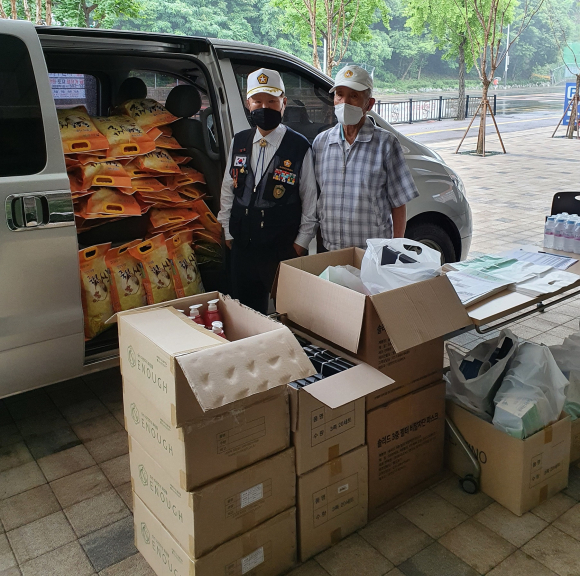 ¾ÆÇ ¸ö¿¡µµ ºÒ±¸ÇÏ°í ´ëÇѹα¹6.25ÂüÀüÀ¯°øÀÚȸ ±ºÆ÷½ÃÁöȸ Á¤ÅÂÈ È¸ÀåÀº ±×µ¿¾È ÈÄ¿ø¹ÞÀº ¹°Ç°À» 6¿ù 18ÀÏ Á¦71ȸ ÂüÀüÀÏ¿¡ ÁîÀ½ÇÏ¿© ȸ¿ø 150¸í¿¡°Ô ½Ò, ¸¶½ºÅ©, »þ¿öÀý, ¾ç¸»¼¼Æ®, Çѹæ¼ÒÈÁ¦ µîÀ» ¹èºÎÇϰí ȸ¿øµéÀ» °Ý·ÁÇß´Ù.