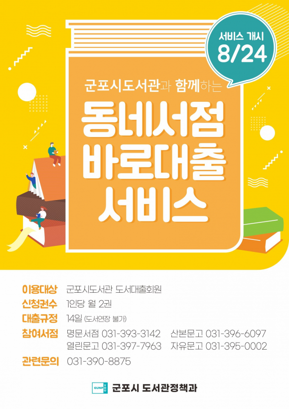 ±ºÆ÷½Ã´Â Áö³ÇØ Áö¿ª¼Á¡µé°ú ü°áÇÑ Çù¾à¿¡ µû¶ó 8¿ù 24ÀϺÎÅÍ ¡®µ¿³×¼Á¡ ¹Ù·Î´ëÃâ ¼ºñ½º¡¯¸¦ ¿î¿µÇÑ´Ù°í ¹àÇû´Ù. ¡®µ¿³×¼Á¡ ¹Ù·Î´ëÃâ ¼ºñ½º¡¯´Â Áß¾Óµµ¼°ü°ú ¾î¸°À̵µ¼°ü¿¡ ¼ÒÀåÇÏÁö ¾ÊÀº µµ¼¸¦ °¡±î¿î ¼Á¡¿¡¼ ´ëÃâ¹Þ°í ¹Ý³³ÇÒ ¼ö ÀÖ´Â ¼ºñ½º·Î, 10ÀÏ ÀÌ»ó ¼Ò¿äµÇ´ø ½Å°£µµ¼ Á¤¸®±â°£ÀÌ ´ÜÃàµÅ º¸´Ù ºü¸£°Ô ½Å°£µµ¼¸¦ ÀÌ¿ëÇÒ ¼ö ÀÖ´Ù. ÇØ´ç ¼ºñ½º´Â ±ºÆ÷½Ãµµ¼°ü ȨÆäÀÌÁö(www.gunpolib.go.kr)¸¦ ÅëÇØ ½ÅûÀÌ °¡´ÉÇϸç, ±ºÆ÷½Ãµµ¼°ü ´ëÃâȸ¿øÀ̸é 1Àδç ÃÖ´ë ¿ù 2±Ç±îÁö ½ÅûÇÒ ¼ö ÀÖ´Ù. ¼ºñ½º¸¦ ½ÅûÇÑ ÀÌ¿ëÀÚ´Â ¼ö·É ¾È³» ¹®ÀÚ¸¦ ¹ÞÀº ÈÄ ÁöÁ¤µÈ ¼Á¡À» ¹æ¹®ÇØ ½Åû µµ¼¸¦ ¹ÞÀ» ¼ö ÀÖÀ¸¸ç, ¹Ý³³ÇÒ ¶§µµ ¼ö·ÉÇß´ø ¼Á¡À» ã¾Æ ¹Ý³³ÇÏ¸é µÈ´Ù. ¡®µ¿³×¼Á¡ ¹Ù·Î´ëÃâ ¼ºñ½º¡¯ Âü¿© ¼Á¡Àº ¸í¹®¼Á¡(»êº»Ãµ·Î 193), »êº»¹®°í(±¤Á¤·Î 70), ¿¸°¹®°í(±ºÆ÷·Î 464¹ø±æ 2), ÀÚÀ¯¹®°í(»êº»Ãµ·Î 62) µî 4°÷À̸ç, ±ºÆ÷½Ãµµ¼°ü ´ëÃâȸ¿øÀº ¹æ¹®Çϱ⠽¬¿î ¼Á¡À» ÁöÁ¤ÇØ ¼ºñ½º¸¦ ½ÅûÇÏ¸é µÈ´Ù. ÀÚ¼¼ÇÑ ³»¿ëÀº ±ºÆ÷½Ã µµ¼°üÁ¤Ã¥°ú(031-390-8875)·Î ¹®ÀÇÇÏ¸é ¾È³»¹ÞÀ» ¼ö ÀÖ´Ù. ÃÖ¸í¼ö ±ºÆ÷½Ã µµ¼°üÁ¤Ã¥°úÀåÀº ¡°½Ã¹ÎµéÀÌ ÇÊ¿äÇÑ µµ¼¸¦ ºü¸¥ ±â°£ ³»¿¡ Á¦°øÇÒ ¼ö ÀÖ´Â À¯ÀÍÇÑ ¼ºñ½º¡±¶ó¸ç, ¡°¸¹Àº ½Ã¹ÎµéÀÌ ¾îµð¼µç µµ¼ ¼ºñ½º¸¦ ÆíÇÏ°Ô ÀÌ¿ëÇÒ ¼ö ÀÖµµ·Ï ÃÖ¼±À» ´ÙÇϰڴÙ.¡±°í ¸»Çß´Ù. |