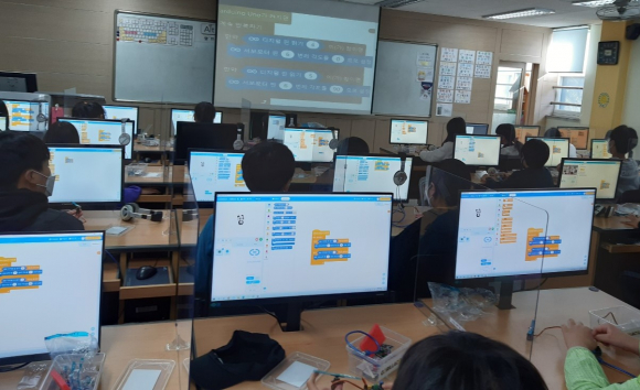 ±ºÆ÷Àǿձ³À°Áö¿øÃ» ¼Ò¼Ó ¿À±ÝÃʵîÇб³(±³Àå ¿¬¿µ¸¸)´Â 5, 6Çгâ ÇлýÀ» ´ë»óÀ¸·Î 20Â÷½Ã ¸ÞÀÌÄ¿±³À°À» ½Ç½ÃÇß´Ù°í ¹àÇû´Ù. À̹ø¿¡ ½Ç½ÃµÈ ¸ÞÀÌÄ¿±³À°Àº ÄÄÇ»ÅÍ ¹× ¾ÆµÎÀ̳ë¿Í ºÎÀÚ½Çµå ±³±¸¸¦ Ȱ¿ëÇÏ¿© ÇлýµéÀÌ Á¦Ç°À» ¸¸µå´Â ¸ðµç °úÁ¤À» ½º½º·Î ÆÇ´ÜÇϸç À̲ø¾î³ª°¡´Â ÇÁ·ÎÁ§Æ® ±³À°ÀÌ´Ù. À̸¦ ÅëÇØ ÇлýµéÀº âÀǷ°ú ºñÆÇÀû »ç°í, ¹®Á¦ÇØ°á ´É·Â, Çùµ¿ ´É·Â°ú °°Àº ¹Ì·¡ ÇÙ½É ¿ª·®À» ±â¸¦ ¼ö ÀÖÀ¸¸ç, ÃÊµîÆ¯¼ºÈ±³À° Áö¿ø»ç¾÷¿¡¼ ´ãÀÓ°ú °»ç¿ÍÀÇ Çù·ÂÇØ AI±³À°ÀÇ ÀÏȯÀÎ ¸ÞÀÌÄ¿±³À°À» ÁøÇàÇß´Ù. ƯÈ÷ À̹ø ±³À°Àº ¡ã1~2Â÷½Ã, ÀΰøÁö´É À̷аú ¾ÆµÎÀÌ³ë ¼¾¼¿¡ ´ëÇÑ ÀÌÇØ ¡ã3~4Â÷½Ã, ÀΰøÁö´É ÀÎ½Ä ¼ºñ½º °æÇè°ú À½¼º ÀÎ½Ä Ãâ·Â ¡ã5~20Â÷½Ã, ±â°èÇнÀÀ» ÅëÇÑ ÄÚµù µîÀ¸·Î ÀÌ·ïÁ³´Ù. ¿¬¿µ¸¸ ±³ÀåÀº ¡°ÇлýµéÀÌ ¾ÆÀ̵ð¾î¸¦ ³»´Â µ¥¼ ±×Ä¡´Â °ÍÀÌ ¾Æ´Ï¶ó ½Ç»ýȰ¿¡¼ ¹«¾ð°¡¸¦ Á÷Á¢ ¸¸µé°í °³¼±ÇÏ´Â °úÁ¤À» ¹Ýº¹ÇÔÀ¸·Î½á ȸº¹Åº·Â¼ºÀ» ±â¸¦ ¼ö ÀÖ´Ù.¡±¸é¼ ¡°ÄÚµùÀ» ±â¹ÝÀ¸·Î ¾ÆÀ̵ð¾î¸¦ ¼³°èÇÏ°í ½º½º·Î ¿øÇÏ´Â °ÍÀ» ¸¸µå´Â AI±³À°À» ÅëÇØ ÇлýµéÀÌ ¹Ì·¡»çȸÀÇ ¹ß¸í°¡·Î °Åµì³µÀ¸¸é ÁÁ°Ú´Ù.¡±°í ¸»Çß´Ù. |