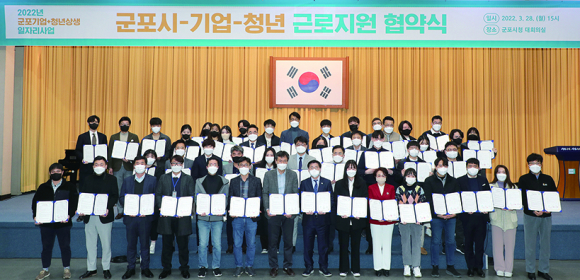 ±ºÆ÷½Ã´Â 3¿ù 28ÀÏ ½Ãû ´ëȸÀǽǿ¡¼, °ü³» û³âµé¿¡°Ô Áß¼Ò À¯¸Á±â¾÷ÀÇ Á¤±ÔÁ÷ ÀÏÀÚ¸®¸¦ Á¦°øÇÏ°í ±â¾÷µé¿¡´Â û³âä¿ë ÀΰǺñ¸¦ Áö¿øÇÏ´Â ³»¿ëÀÇ ¡®±ºÆ÷±â¾÷+û³â »ó»ý ÀÏÀÚ¸®»ç¾÷¡¯ ±Ù·ÎÁö¿øÇù¾àÀ» ü°áÇß´Ù. À̹ø Çù¾àÀ» ÅëÇØ ±ºÆ÷½Ã´Â Âü¿©±â¾÷¿¡ ¿ù ÃÖ´ë 180¸¸¿ø, ÃÖÀå 24°³¿ù±îÁö Âü¿©Ã»³âµéÀÇ ÀΰǺñ¸¦ Áö±ÞÇϰí, û³âµé¿¡°Ô´Â Á¤±ÔÁ÷ ÀÏÀÚ¸®¸¦ Á¦°øÇØ Ã»³â ÀÚ»êÇü¼º ¹× Á÷¹«±³À°À» Áö¿øÇÑ´Ù. ÀÌ¿¡ ¾Õ¼ ±ºÆ÷½Ã´Â ¿ÃÇØ 2~3¿ù Âü¿©±â¾÷ 42°³ ¹× ¹ÌÃë¾÷ û³â 55¸íÀ» ¼±Á¤ÇÏ´Â µî °ø¸ð ÀýÂ÷¸¦ ÁøÇàÇÏ¿´À¸¸ç, ±ºÆ÷½Ãû¿¡¼ °³ÃÖÇÑ ¸éÁ¢Çà»ç¸¦ ÅëÇØ ¢ß´õ½ºÅĴٵ带 ºñ·ÔÇÑ ÃÑ 22°³ ±â¾÷°ú û³â 24¸íÀ» Ãë¾÷ ¿¬°èÇß´Ù. ÇÑ´ëÈñ ±ºÆ÷½ÃÀåÀº ¡°À̹ø Çù¾àÀÌ ¾ó¾îºÙÀº û³âµéÀÇ ±¸Á÷³°ú ±â¾÷µéÀÇ ±¸Àγ¿¡ Ȱ·ÂÀ» ºÒ¾î³Ö¾î, Áö¿ª°æÁ¦ Ȱ¼ºÈ¿¡ Å« µµ¿òÀÌ µÉ °ÍÀ¸·Î ±â´ëÇÑ´Ù.¡±°í ¸»Çß´Ù.