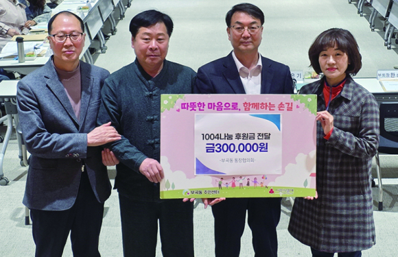 Àǿսà ºÎ°îµ¿ÅëÀåÇùÀÇȸ´Â 3¿ù 28ÀÏ ¾î·Á¿î ÀÌ¿ôÀ» µ½±â À§ÇÑ ¡®1004³ª´®¡¯ ÈÄ¿ø±Ý 30¸¸ ¿øÀ» ºÎ°îµ¿ Áֹμ¾ÅÍ¿¡ ±âŹÇß´Ù. ÇÑÆí, ºÎ°îµ¿ÅëÀåÇùÀÇȸ´Â ¡®1004 ³ª´®¡¯ÀÇ Á¤±â ÈÄ¿ø ¿Ü ¾Æ¸§Ã¤³ëÀÎÁö°ü ¹è½ÄºÀ»ç, ±èÀå ³ª´®Çà»ç µî Áö¿ª»çȸ¸¦ À§ÇÑ ³ª´® Ȱµ¿À» Áö¼ÓÀûÀ¸·Î ½ÇõÇϰí ÀÖ´Ù. äÀº±â ºÎ°îµ¿ ÅëÀåÇùÀÇȸÀåÀº ¡°¾î·Á¿î ÀÌ¿ôµé¿¡°Ô ÀÛÀº º¸ÅÆÀÌ µÇ±æ ¹Ù¶ó¸ç, ¾ÕÀ¸·Îµµ ºÎ°îµ¿ÅëÀåÇùÀÇȸ°¡ Áö¼ÓÀûÀÎ ³ª´®°ú ºÀ»ç¸¦ ½ÇõÇÒ ¼ö ÀÖµµ·Ï ³ë·ÂÇϰڴÙ.¡±°í ¹àÇû´Ù. ¹ÚÁØÈñ ºÎ°îµ¿ÀåÀº ¡°Áö¿ª»çȸ¸¦ À§ÇØ µû¶æÇÑ ³ª´®À» ½ÇÃµÇØ ÁֽŠºÎ°îµ¿ÅëÀåÇùÀÇȸ¿¡ ±íÀÌ °¨»çµå¸°´Ù¡±¸ç, ¡°¼ÒÁßÇÑ ¼º±ÝÀÌ µµ¿òÀÌ ÇÊ¿äÇÑ ÀÌ¿ôµé¿¡°Ô »ç¿ëµÉ ¼ö ÀÖµµ·Ï ÇϰڴÙ.¡±°í ÀüÇß´Ù.