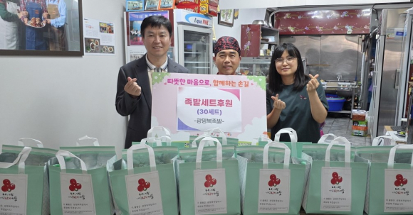 Àǿսô 7¿ù 30ÀÏ ºÎ°îµ¿ ¼ÒÀç ±¤¸íº¹Á·¹ß(´ëÇ¥ Á¤±Ù±¸)ÀÌ Áߺ¹À» ¸Â¾Æ Áö¿ª ³» Ãë¾à°èÃþ 30°¡±¸¸¦ À§ÇØ Á·¹ß 30¼¼Æ®¸¦ ºÎ°îµ¿Áֹμ¾ÅÍ¿¡ ±âŹÇß´Ù°í ¹àÇû´Ù. À̳¯ ÈÄ¿øÇ°Àº Áߺ¹À» ¸Â¾Æ ½Ä»ç Áغñ¿¡ ¾î·Á¿òÀ» °Þ´Â ¾î¸£½ÅÀ» µ½°íÀÚ ¸¶·ÃµÆÀ¸¸ç, ºÎ°îµ¿Áֹμ¾ÅÍ¿¡¼´Â Ȧ¸ö ¾î¸£½Åµé²² Á·¹ß¼¼Æ®¸¦ Àü´ÞÇÏ°í ¾ÈºÎ¸¦ È®ÀÎÇß´Ù. Á¤±Ù±¸ ´ëÇ¥´Â ¡°¾î¸£½ÅµéÀÌ Á·¹ßÀ» µå½Ã°í ¹«´õ¿î ¿©¸§À» °Ç°ÇÏ°Ô º¸³»½Ã±â¸¦ ¹Ù¶ó´Â ¸¶À½À¸·Î Á¤¼ºÀ» ´ÙÇØ ÈÄ¿øÇ°À» ÁغñÇß´Ù.¡±¸ç, ¡°¾ÕÀ¸·Îµµ ³ª´®À» ÀÏ»óó·³ ½ÇõÇϸç ÀÌ¿ôµé°ú Á¤À» ³ª´©´Â °¡°Ô°¡ µÇµµ·Ï ³ë·ÂÇϰڴÙ.¡±°í ¸»Çß´Ù. ÃÖ¼®¿ì ºÎ°îµ¿ÀåÀº ¡°³¢´Ï¸¦ °Å¸£±â ½¬¿î ¾î¸£½ÅµéÀ» À§ÇØ ¶æ±íÀº ³ª´®À» ½ÇÃµÇØ ÁֽŠ´ëÇ¥´Ô²² °¨»çµå¸°´Ù.¡±¸ç, ¡°¾ÕÀ¸·Î º¹Áö »ç°¢Áö´ë¿¡ ³õÀÎ ÀÌ¿ôµéÀÌ ¼Ò¿ÜµÇÁö ¾Êµµ·Ï ¹Î°üÀÌ ÇÔ²² Áö¿ª»çȸ¸¦ ¼¼½ÉÈ÷ »ìÆì³ª°¡°Ú´Ù.¡±¶ó°í ÀüÇß´Ù. |