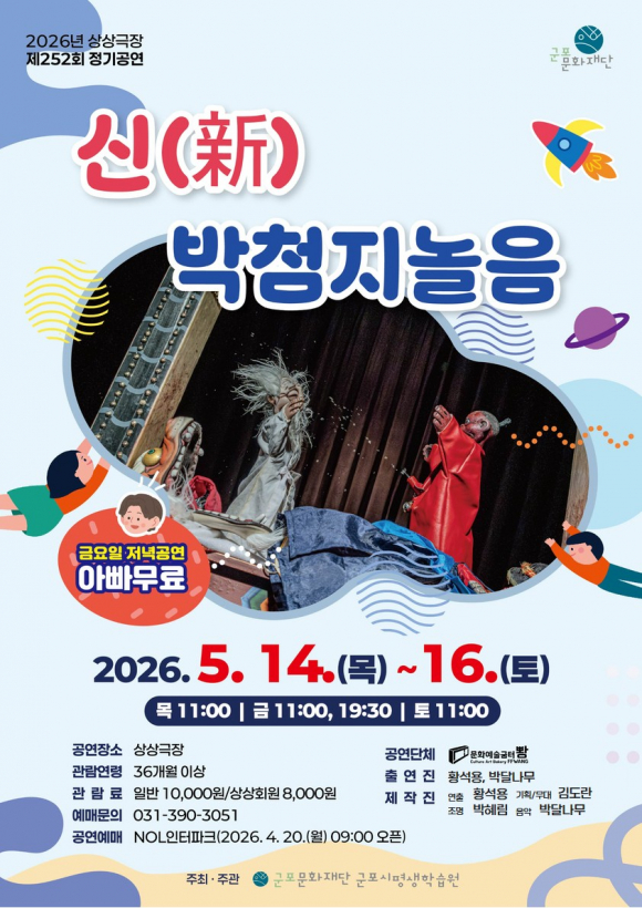 ±ºÆ÷¹®È­Àç´Ü ±ºÆ÷½ÃÆò»ýÇнÀ¿ø »ó»ó±ØÀåÀº 5¿ù Á¤±â°ø¿¬À¸·Î ÀüÅë ÀÎÇü±ØÀ» Çö´ëÀûÀ¸·Î Ç®¾î³½ <ãæ¹Ú÷Áö³îÀ½>À» ¹«´ë¿¡ ¿Ã¸°´Ù. °ø¿¬Àº 5¿ù 14ÀϺÎÅÍ 16ÀϱîÁö »ó»ó±ØÀå¿¡¼­ ¸¸³¯ ¼ö ÀÖ´Ù.