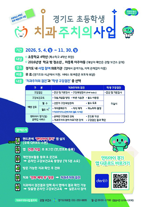 Àǿսà º¸°Ç¼Ò°¡ ¿À´Â 5¿ù 4ÀϺÎÅÍ 11¿ù 30ÀϱîÁö ¡®2026³â °æ±âµµ ÃʵîÇлý Ä¡°úÁÖÄ¡ÀÇ»ç¾÷¡¯À» ½ÃÇàÇÑ´Ù.